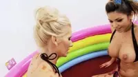 The video begins with the two stunning women a blonde and brunette, known as the Tomato Sensations, indulging in an enticing lesbian makeout session.The inflatable pool, the centerpiece of the scene, provides the perfect environment for their passion.Their seductive embrace includes deep kisses and erotic touches on each others bodies.The brunette caresses the blondes inflatable boobs while she kisses her luscious lips, moving down to lick and tease her sensual nipples.Their tongues dart between each other in a fervent display of passion, their hands wandering over each others firm and toned bodies, causing a wave of arousal to build within them.The brunette begins to explore the blondes sensitive areas as her hands glide down to caress the smooth labia, softly kissing the clit as she gently spreads the legs wider apart, revealing more of the tantalizing wetness below.In the heat of their passion, the two lovers move on to using the inflatablepool itself as part of their sex play, with the brunettes fingers skillfully entering the blondes tight cunt in a slow and seductive fingering session.As her finger goes in and out, she simultaneously kisses her lovers pussy lips and flicks her clit with her tongue, causing the blonde to gasp and squirm with pleasure.Their lovemaking continues as they explore each others bodies with passion and vigor, their tongues licking and teasing sensitive spots, fingers exploring erogenous zones.The sensations are amplified by the presence of the inflatablepool and the enticing aroma of tomato sauce that adds an unusual yet exhilarating element to the scene.Using a dildo, the two friends engage in some mutual masturbation as they pleasure each other using their toys, each ones hands expertly working in sync with her own to create an electrifying experience of orgasmic delight for the both of them.As they lie back on their inflatable bed and relax after a session full of passion, laughter, and tenderness, the Tomato Sensations share a knowing smile, basking in the glow of the pleasure that was experienced within the confines of their Inflatable Pleasure world.