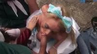 In the steamy adult film, Ribbons in Her Mouth and Blondie's Threesome, the action begins with a stunning blonde bombshell named Blondie seductively tying her pretty little partner in the scene, Ribbons, up with a set of pink ribbons, leaving them to writhe and moan with every teasing touch.As she binds her lover's limbs, each knot becomes tighter and more intense as desire grows within both of them.This is all leading up to an exciting threesome experience that neither will forget any time soon.As the passionate Blondie and her pretty captive Ribbons wait for the final addition to this kinky session, their eyes lock and the tension in the room reaches a boiling point, with Ribbons' horny breaths escaping from between her bound lips, teasing and tempting the last guest.As the door creaks open, two well-hung dudes enter, ready to take on the task of satisfying their eager and tantalized women in this unforgettable threesome experience.Blondie and Ribbons waste no time in devouring these guys' hard cocks with relentless oral passion, teasing them with their pretty mouths, tongue skills, and sultry moans.Their pink little tongues work tirelessly as they suck on each guy's rock-hard cock, creating a scene that would make any straight man blush in sheer envy.Ribbons can be seen wrapping her full, perky boobs around one of the lucky guys, using her oral talent to drive him even further into an insatiable lust for pleasure.In between the intense blowjob scenes, Blondie and Ribbons continue to satisfy each other by indulging in passionate kissing sessions, fingering one another, and sharing a mutual clit-licking moment.The ladies' passion builds until they reach climax after climax, each orgasm more intense than the last.As their desires grow, so does their naughtiness - Blondie and Ribbons invite the two guys to join them in an unforgettable, kinky DP session.They slide themselves inside both women, filling every inch with passionate and hardcore anal action.Ribbons' face becomes flushed with excitement and bliss as Blondie joins her in this double blowjob experience - one of the guys slides his cock between their lips as they continue to pleasure the other one.The sexual energy in the room is palpable, leaving everyone involved sweaty, horny, and aching for more.The video's climax is explosive - Ribbons' face becomes completely covered in the guys' jizz from this intense and unforgettable threesome experience.As she moans in bliss and satisfaction, the camera slowly pans out, leaving behind a scene of absolute erotic beauty and a feeling of envy for those who didn't get to join the thrilling ride of Ribbons in Her Mouth and Blondie's Threesome.Throughout the film, both girls showcase their gorgeous and lovely bodies.The scenes of licking, sucking, fingering, and climaxing are carried out with such precision and skill, making for an orgasmic experience for all parties involved.The true beauty of this threesome experience can be seen in the way it brings together three people who share a unique connection in the world of sexual pleasure and desire, making the scene an erotic masterpiece that will leave audiences breathless and craving for more.In this steamy adult film, each licking, sucking, and fingering scene is carried out with such precision and skill, resulting in orgasmic experiences for all involved.As climaxes build upon climaxes and emotions reach their peak, a stunning facial coverage occurs when her face becomes completely covered in jizz from the intense and unforgettable double blowjob experience.The steamy video's climax leaves viewers in a state of absolute arousal and craving for more.